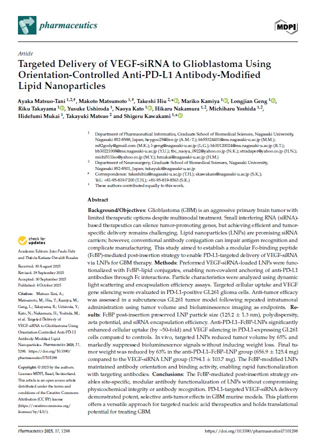 松尾彩香先生の論文が【Pharmaceutics】に掲載されました!